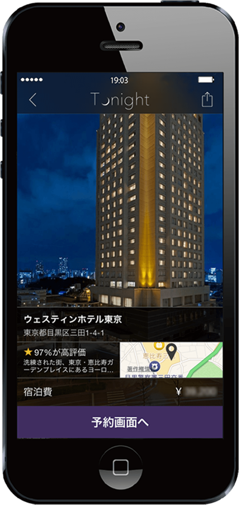 - Tonightはホテル直前予約アブリです。ご予約は7日前から可能です。