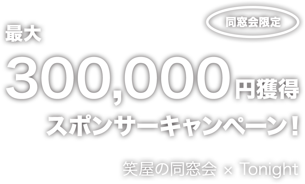 いつも笑屋の同窓会をご利用いただきましてありがとうございます。今回、ホテル直前予約アプリ「Tonight」よりスポンサーをいただいております。